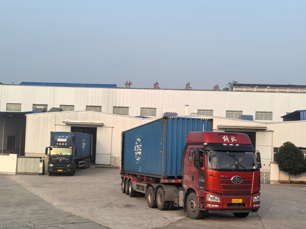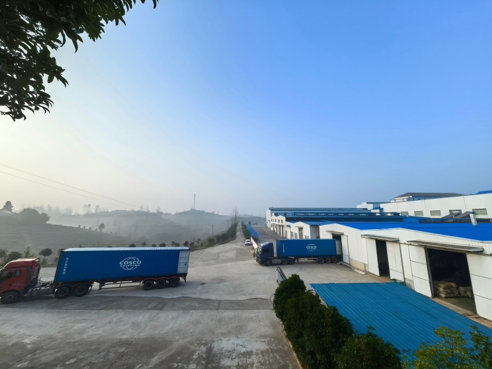 10月28日清晨,秋意正濃,茶山云霧繚繞,美不勝收。兩輛裝滿神農(nóng)有機綠片茶的集裝箱車輛緩緩從進(jìn)出口公司的成品倉庫內(nèi)駛出,這些茶葉將飄洋過海到達(dá)德國漢堡。