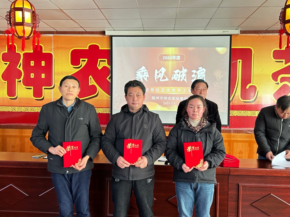 2月6日上午,隨州市神農(nóng)茶業(yè)集團2024年度表彰大會順利召開,集團旗下涉茶產(chǎn)業(yè)8個單位及景區(qū)共計80余人參加,集團副總付忠波主持會議、嚴峰宣讀表彰文件,集團董事長劉三運為先進單位及個人頒發(fā)榮譽證書及獎勵。